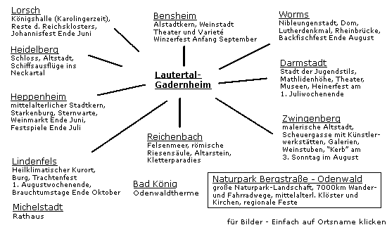 Buslinie Bensheim-Michelstadt, Bahnanschluss Bensheim (Intercity), beheiztes Freibad (6km), Hallenbad (12km),